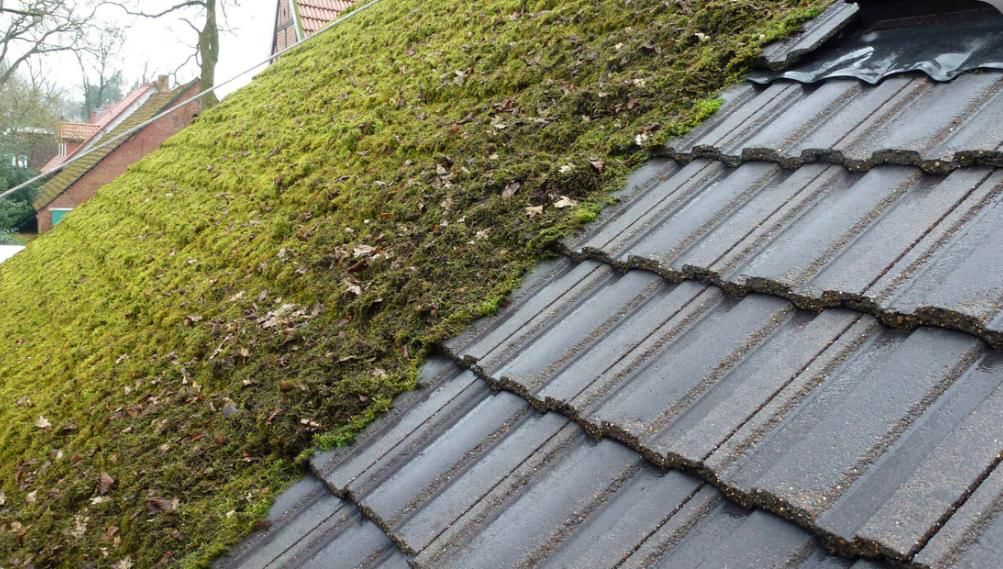 Vorher mit starkem Moos- & Pilzbefall / nachher gereinigt & imprägniert