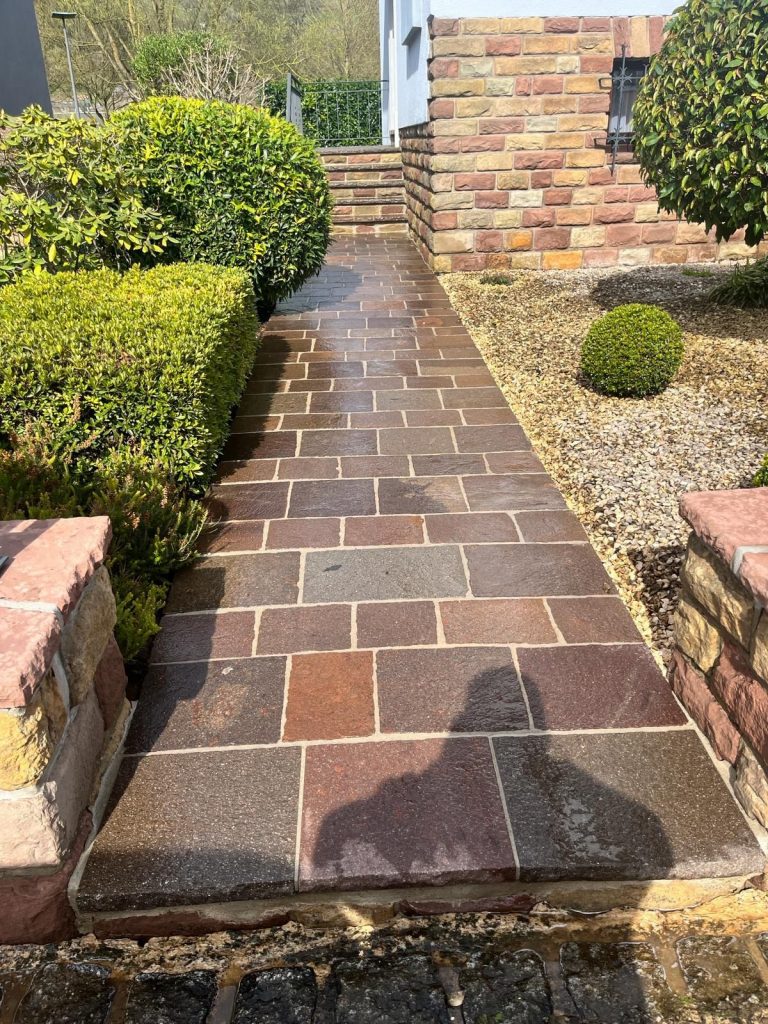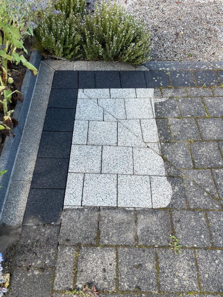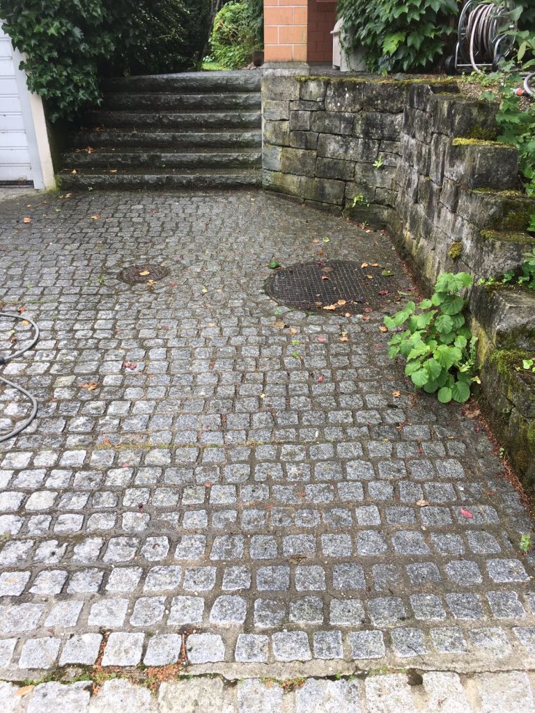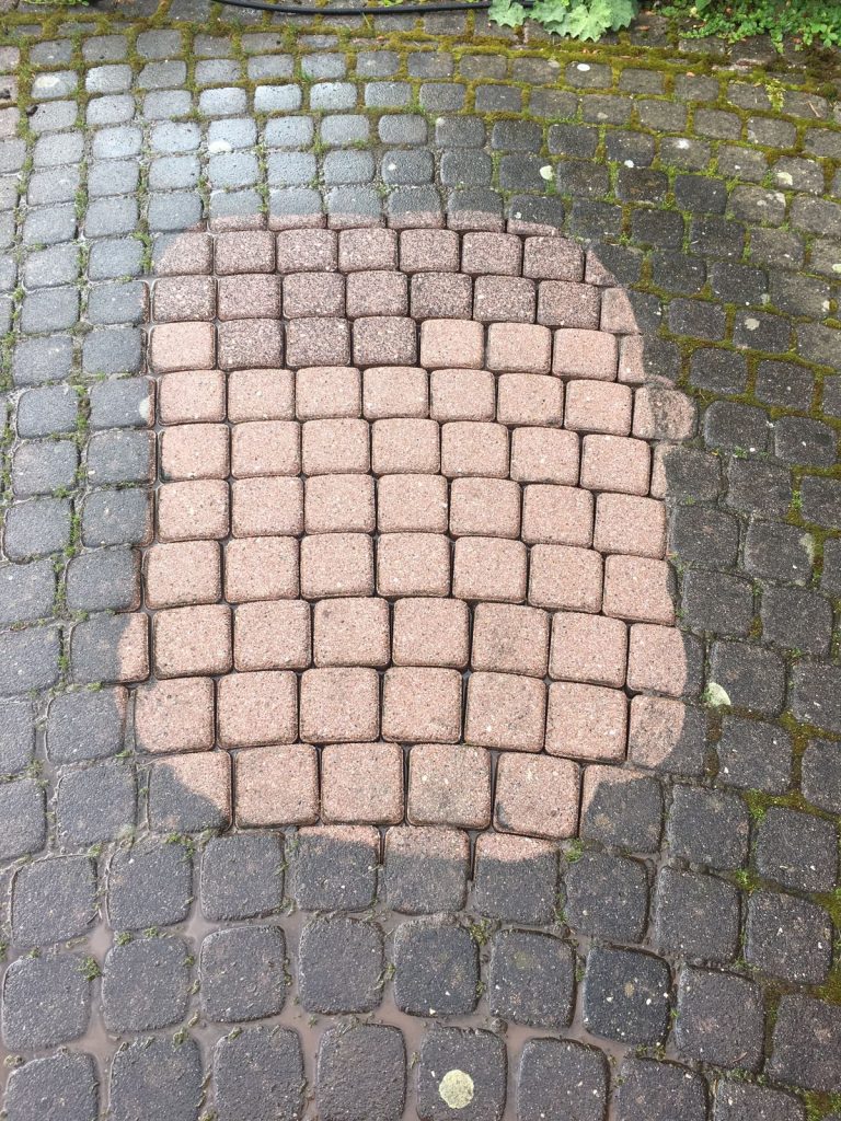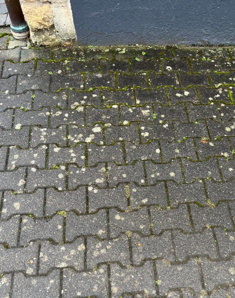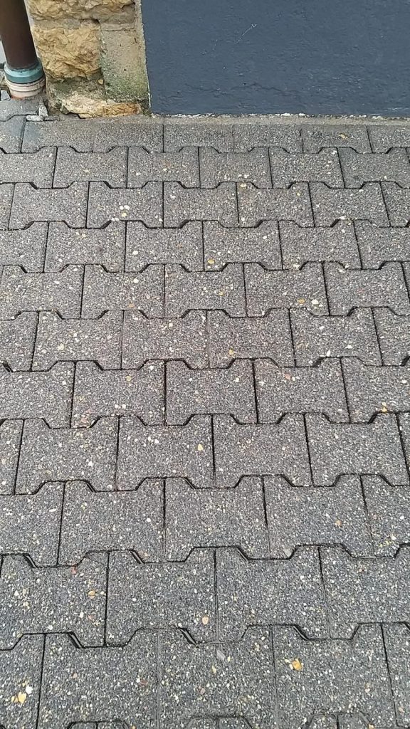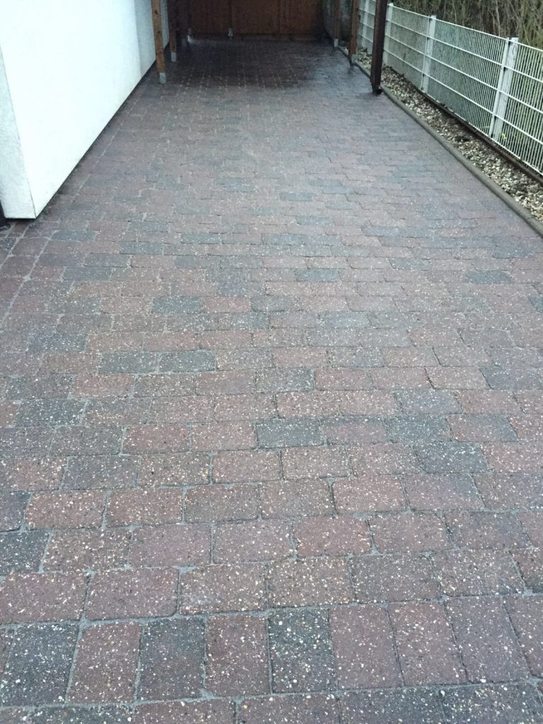 Vorher mit Starkem Pilzbefall & Starkem Unkraut / Nachher mit Antipilzbehandlung & Kunstharzverfugung