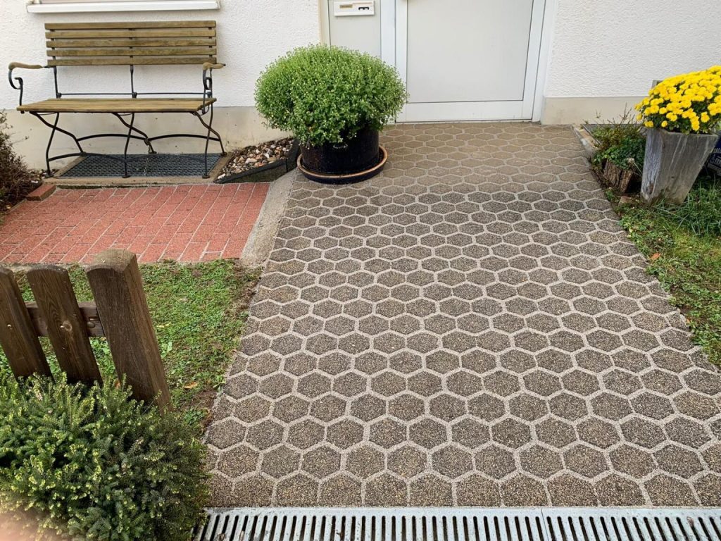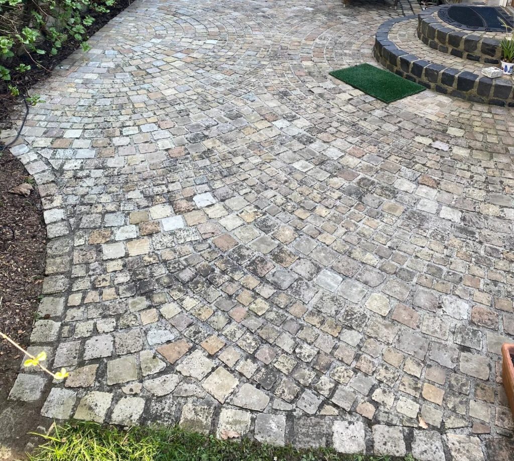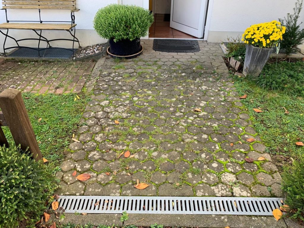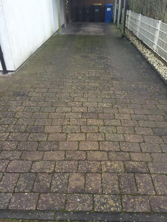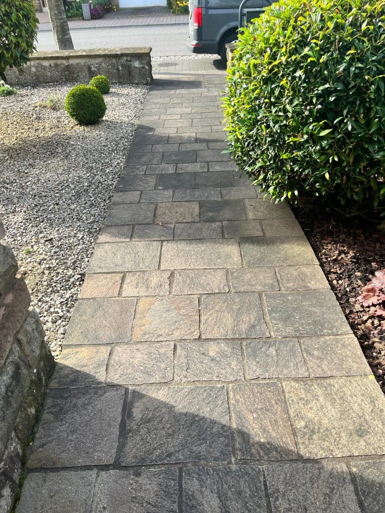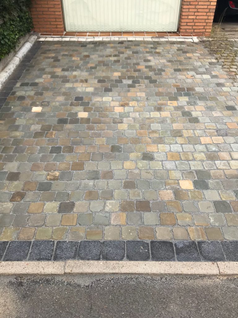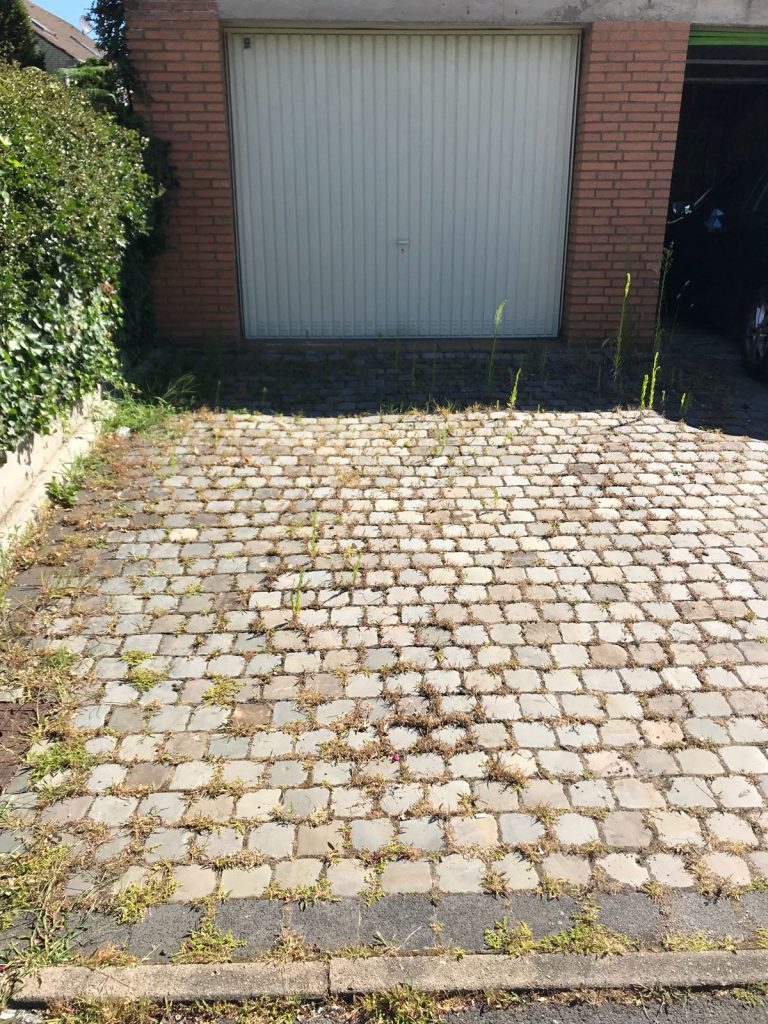 Vorher mit Starkem Pilzbefall & Starkem Unkraut / Nachher mit Antipilzbehandlung & Kunstharzverfugung